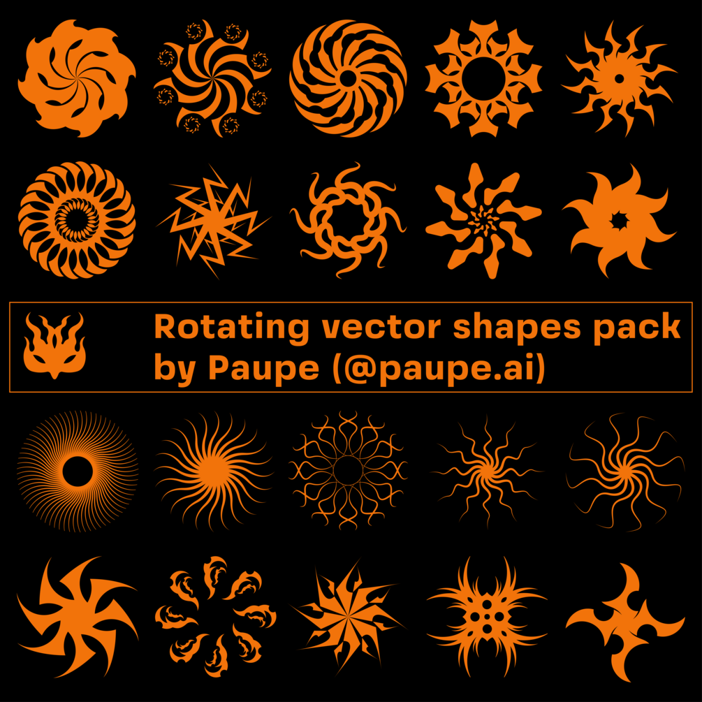 That pack contains 20 rotating vector shapes in various styles like metal, tribal and futuristic. Perfect for 2D artwork, album covers and 3D motion design.